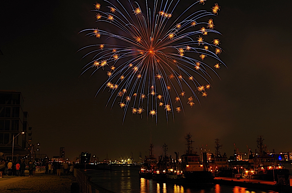 Wie wäre es beispielsweisemit einem beeindruckenden Höhenfeuerwerk, das in ganz Hamburg zu sehen ist?
